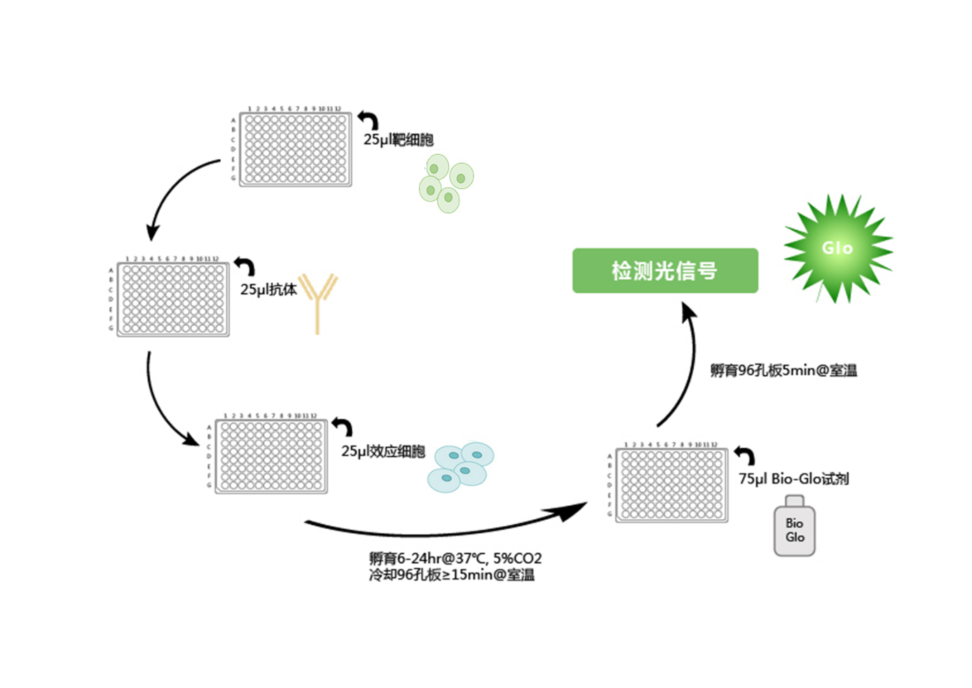 1. 原理明確:基于抗體結(jié)合細(xì)胞對效應(yīng)細(xì)胞FcγRIIIa受體信號通路的激活;