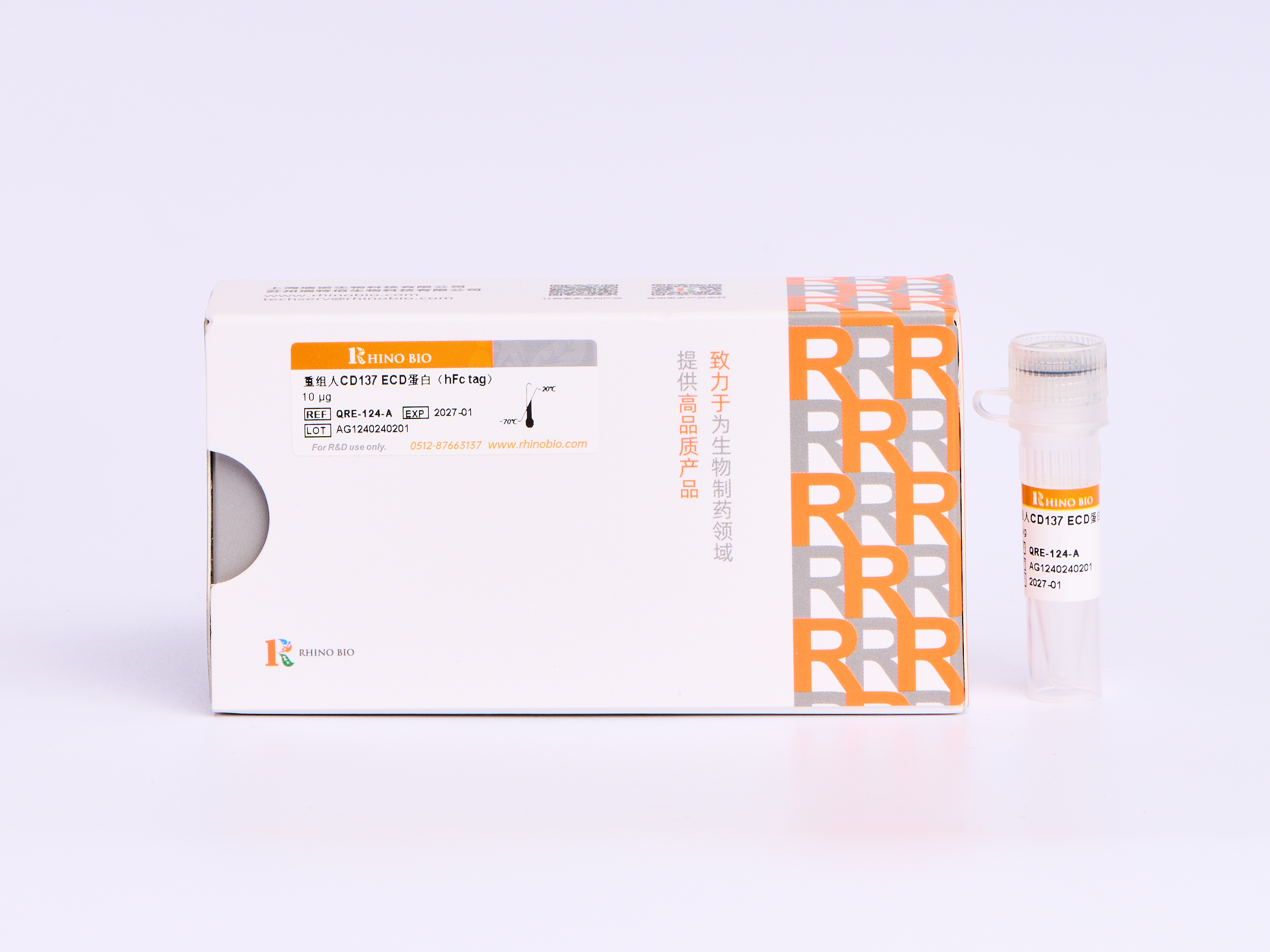 重組人CD137 ECD蛋白(hFc tag)為重組人CD137 ECD(tumor necrosis factor receptor superfamily, member 9 )和人IgG1 Fc融合蛋白。CD137(也稱為4-1BB)是一種表面共刺激糖蛋白,最初描述為存在于活化T淋巴細胞上,屬于腫瘤壞死因子(TNF)受體超家族。它主要在活化的CD4 +和CD8 + T細胞上表達,并與在一些抗原呈遞細胞(例如巨噬細胞和活化的B細胞)上表達的高親和力配體(4-1BBL)結(jié)合。配體結(jié)合后,4-1BB與腫瘤壞死因子受體相關(guān)因子(TRAFs)相關(guān),后者是介導下游信號轉(zhuǎn)導事件(包括NF-κB激活和細胞因子產(chǎn)生)的銜接蛋白。 4-1BB信號通過與4-1BBL結(jié)合或通過抗體連接傳遞,為T細胞活化和生長以及單核細胞增殖和B細胞存活提供信號,并在T細胞介導的免疫反應(yīng)的擴增中起重要作用回應(yīng)。另外,CD137和CD137L在不同的人原發(fā)性腫瘤組織中表達,表明它們可能影響腫瘤的進展。在活化的T細胞上CD137的交聯(lián)已顯示出增強鼠模型中抗腫瘤免疫反應(yīng)的希望,目前正在I期臨床試驗中測試激動性抗CD137抗體。 CD137(sCD137)的可溶性形式是通過差異剪接產(chǎn)生的。 sCD137可以與CD137配體結(jié)合,拮抗膜結(jié)合CD137的共刺激活性,并減少T細胞增殖和IL-2分泌。