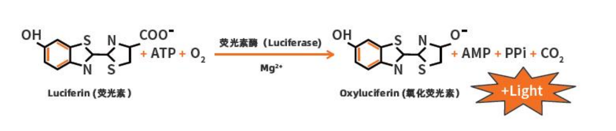 Rhinogen? MycoAlarm? 支原體檢測(cè)試劑盒采用了生化方法進(jìn)行支原體檢測(cè)。利用支原體特有的 ATP 合成相關(guān)酶,在底物存在的情況下可以轉(zhuǎn)化 ADP 為 ATP。存活的支原體溶解后,釋放大量的酶與底物反應(yīng),促進(jìn) ADP 轉(zhuǎn)化為 ATP,提供一種快速、靈敏的樣品檢測(cè)方法。通過對(duì)比加入底物后樣品 ATP 含量的變化檢測(cè),即可通過前后含量變化比例來確定有無支原體。反應(yīng)如下: