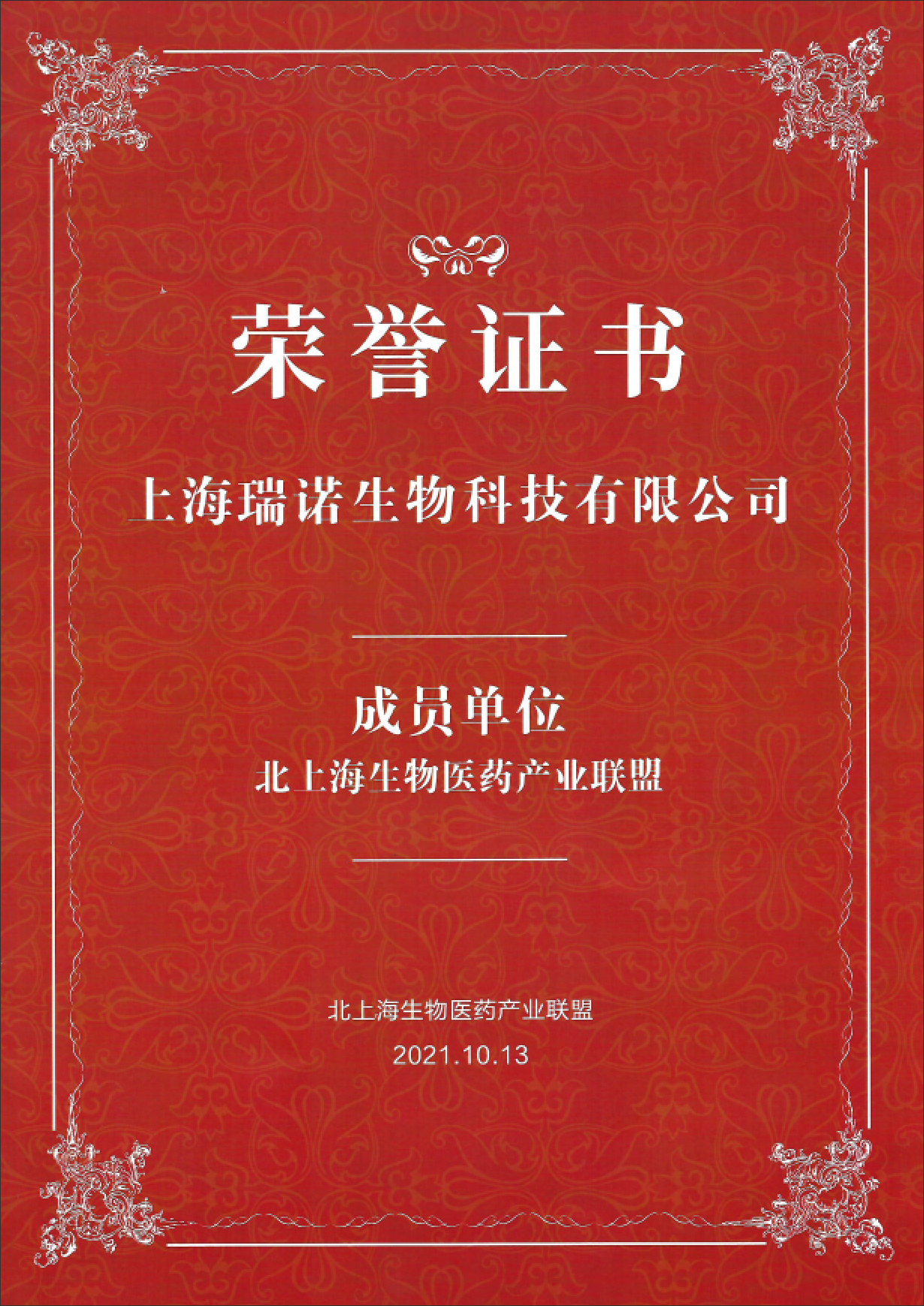 上海瑞諾生物科技有限公司作為北上海生物醫(yī)藥產(chǎn)業(yè)聯(lián)盟成員單位受邀參會(huì),并在本次大會(huì)被授予榮譽(yù)證書。